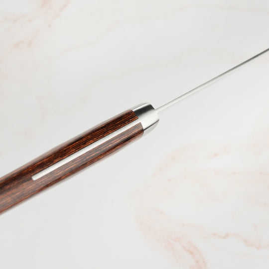 Customizable Carbon Steel Chef Knife Brown Pakkawood Handle Damascus Steel Rivets Ambidextrous Design Dishwasher Safe Handmade