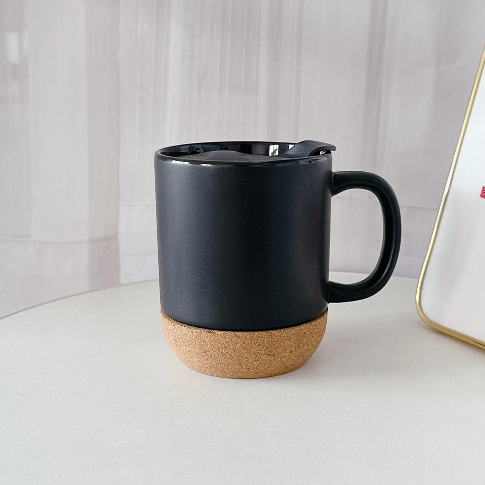 Customizable Cork Base Ceramic Mug Sublimation Blank Wooden Base Matte With Lid Premium Gift Coffee Cup