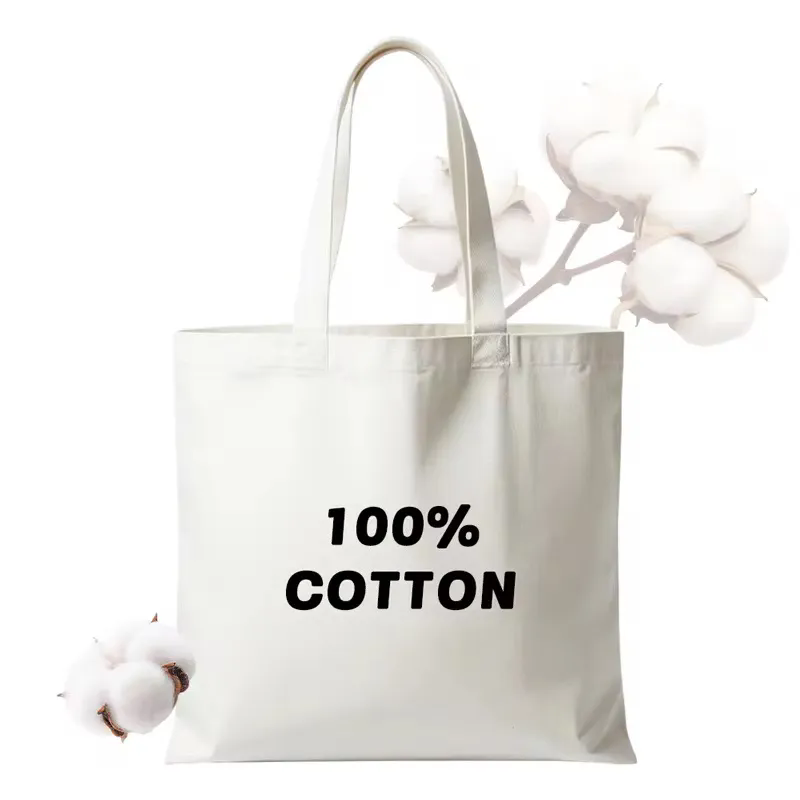 Customizable Cotton Canvas Tote Bag with Double Handle Featuring Custom Logo and Letter Pattern for Shopping