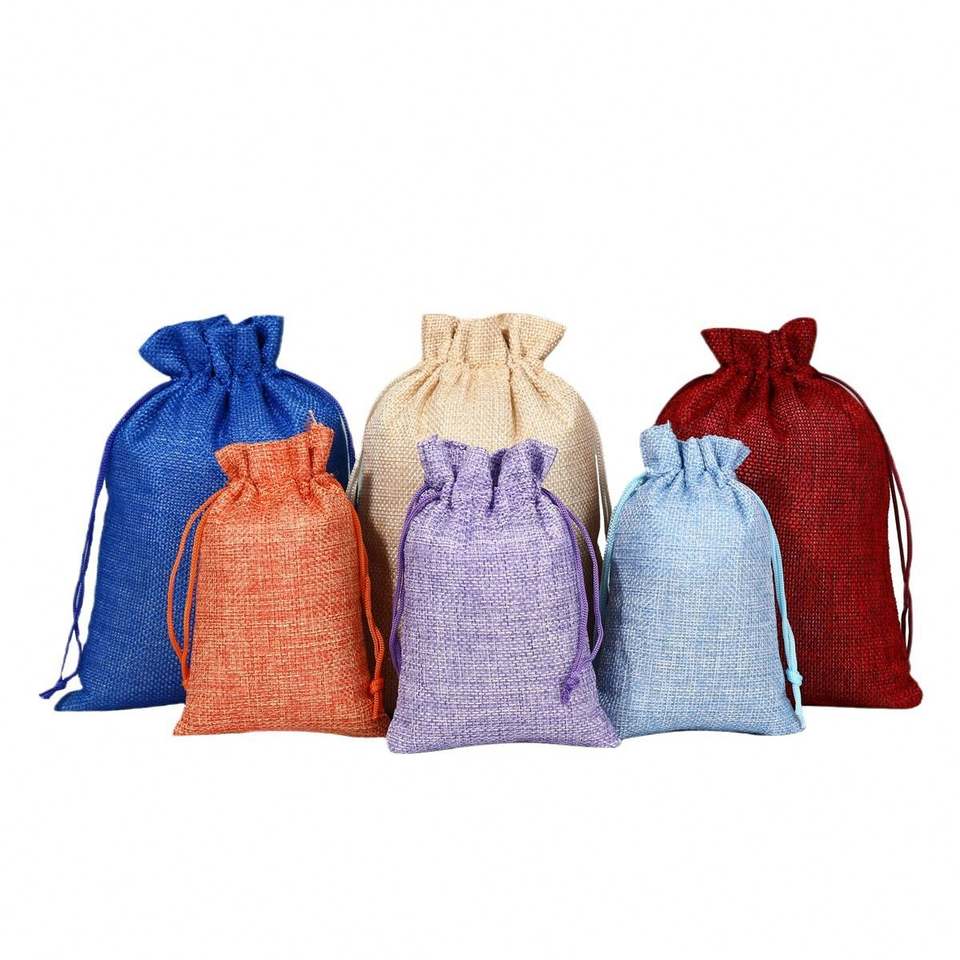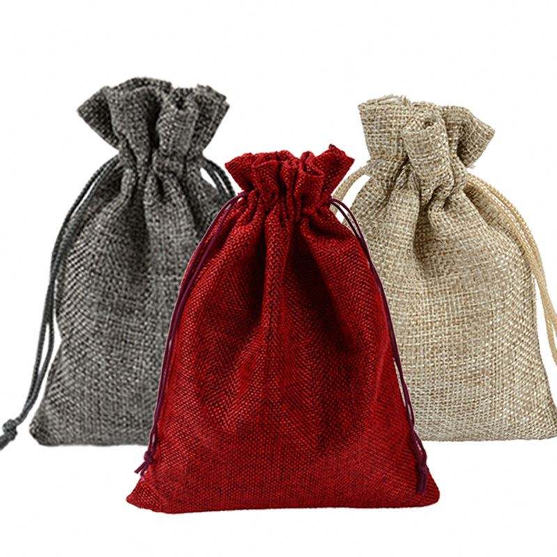 Customizable Durable Biodegradable Eco-friendly Small Jute Satin Drawstring Bags Reusable Grocery Shopping Burlap Pouches
