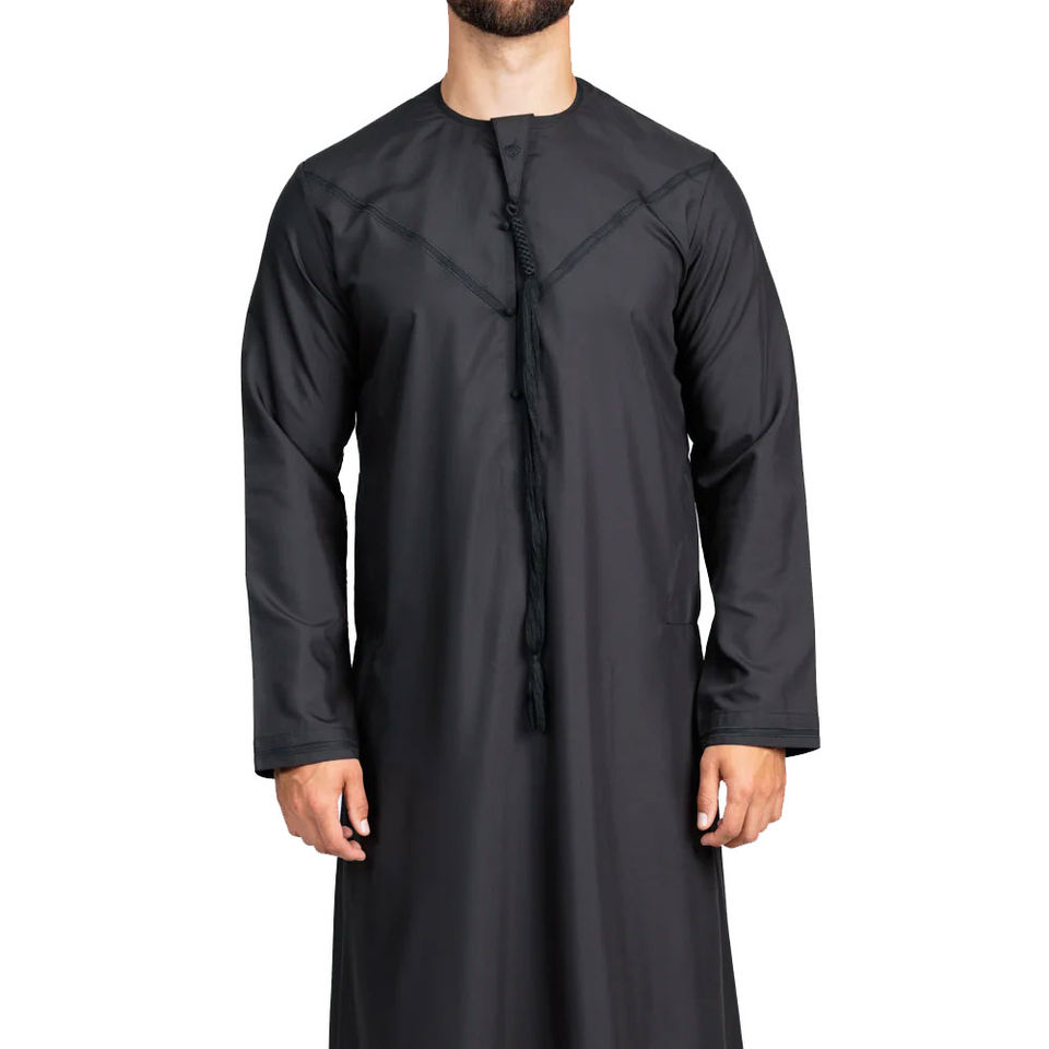 Customizable Eco-Friendly Anti-Wrinkle Plaid Pattern Islamic Men's Long Thobe Saudi Arabian Design Cotton Fabric Custom Logo