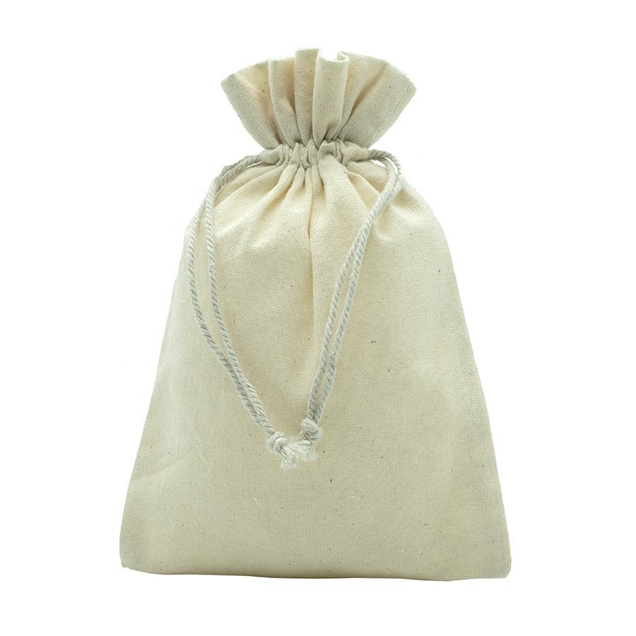 Customizable Eco-Friendly Biodegradable Natural Cotton Drawstring Closure Pouch Recyclable Printed Packaging Bag for Grocery Tea