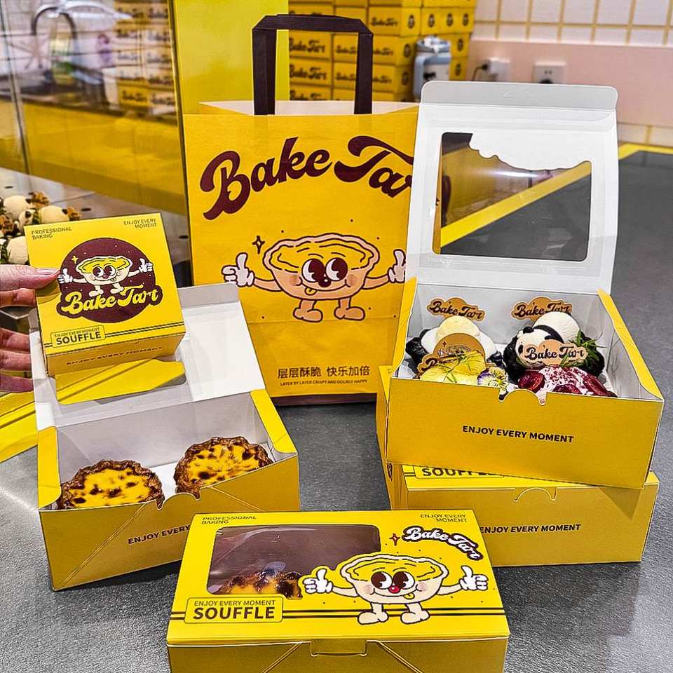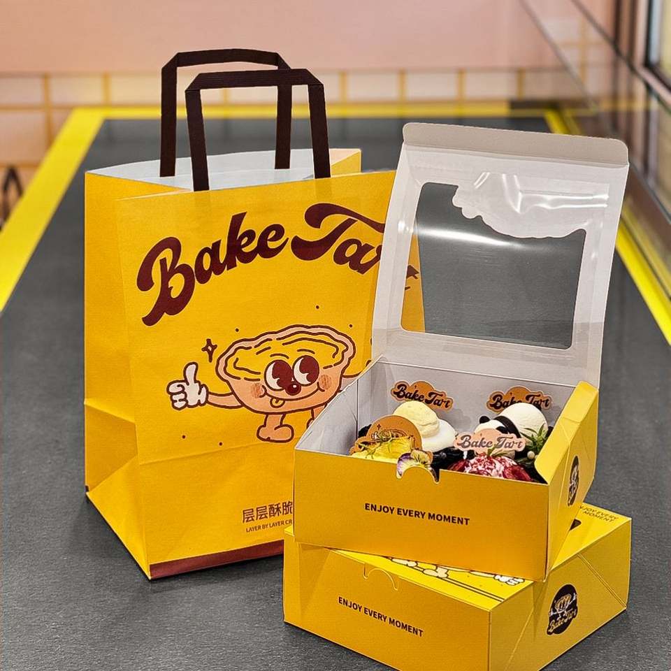 Customizable Eco-Friendly Disposable Kraft Paper Bags Handles for Desserts Cake Egg Tart Takeout Packaging Custom Logo