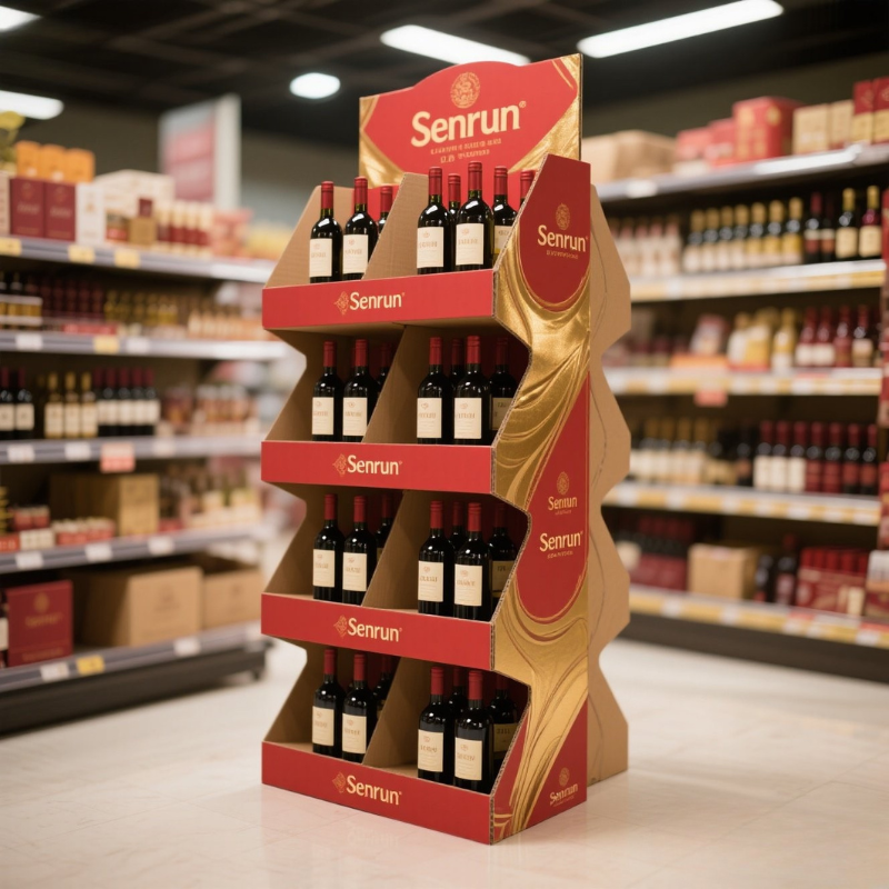 Customizable Eco-Friendly Lightweight Heavy Duty Adjustable Shelf Foldable Corrugated Cardboard Store Display Stand Promotion