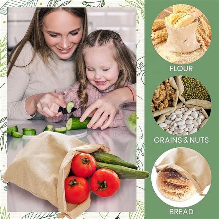 Customizable Eco-friendly Natural Recycled Organic Cotton Product Bags Canvas Muslin Drawstring Bags