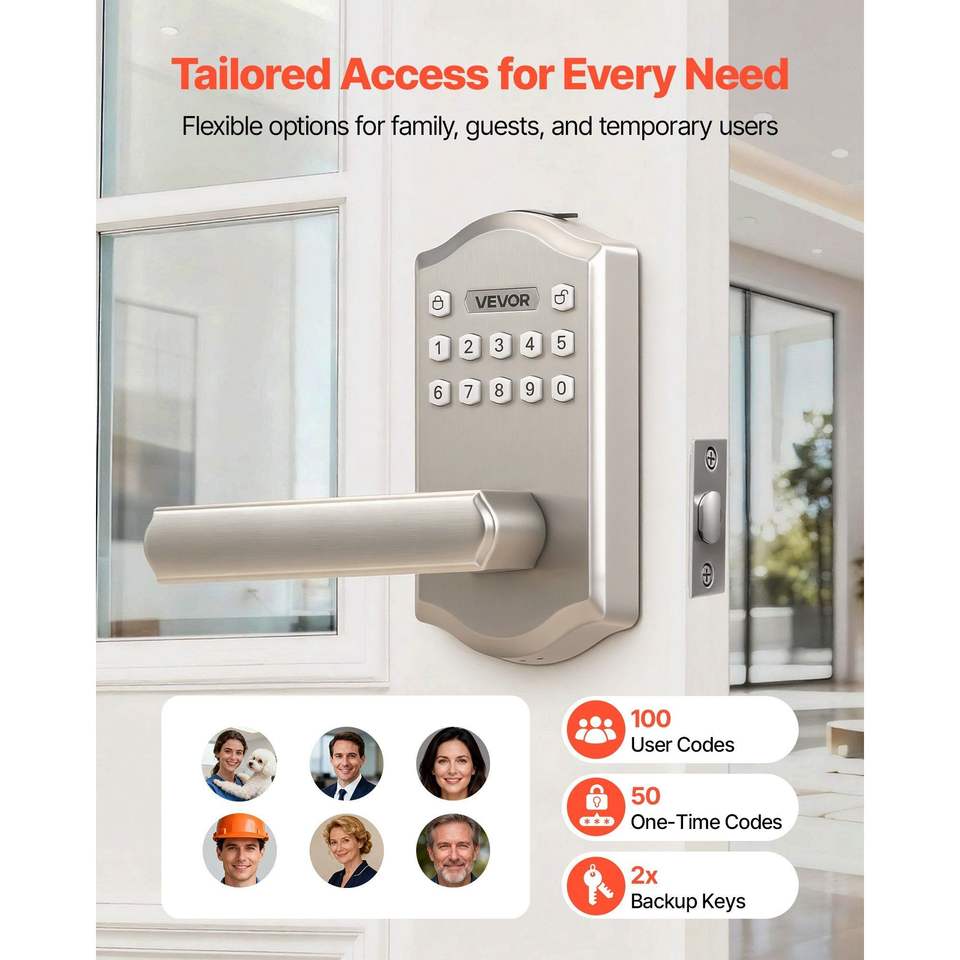 Customizable Electronic Keyless Entry Door Lock Handle with Keypad Auto Lock Keyed Entry Smart Features Customizable User Codes