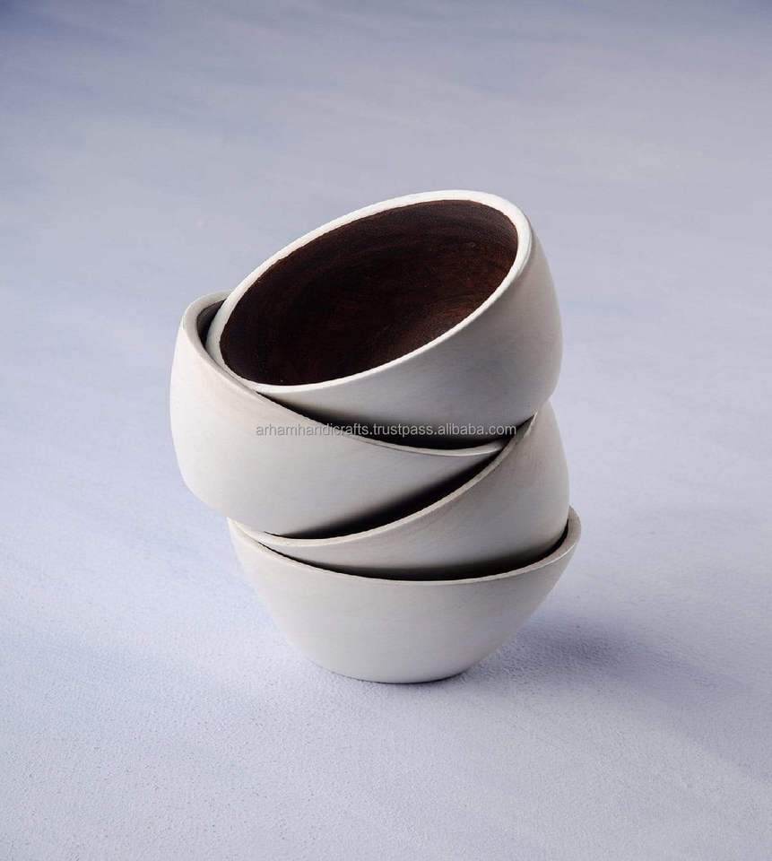 Best Quality Luxury Crafts Customizable Enamel Handcrafted Mango Wood Dining Bowl with Server Disposable Multipurpose Use