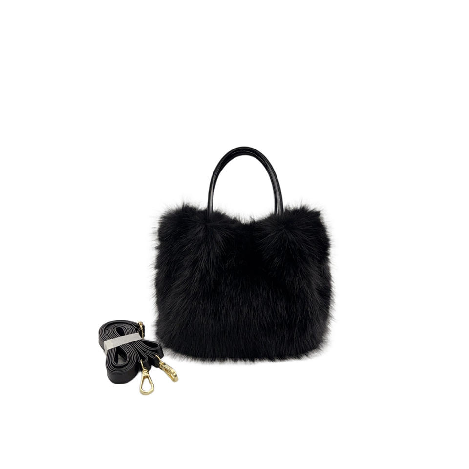Customizable Female Crossbody Shoulder Handbag Plush Faux Mink Design Canvas Tote Bag With Letter Pattern