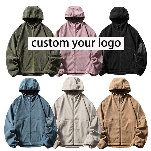 Customizable Fleece Hoodie Men's Autumn Winter Cotton Jacket Outdoor Sports Solid Color Loose Hooded Turtleneck Warm Coat