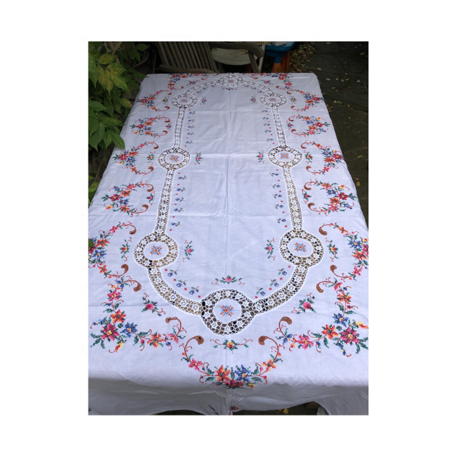 Customizable Floral Pattern Cotton Table Cloth 60x84 Inches Embroidered Design 200 GSM GOTS Certified Soft Wash OEM Ready
