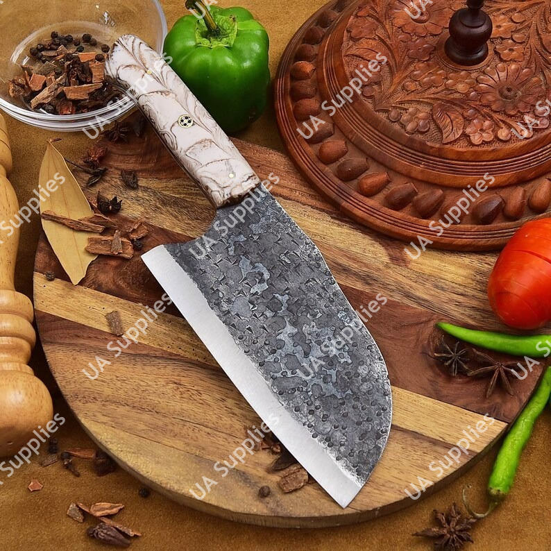 Customizable Forged Ambidextrous Vintage Look Functional Handmade Serbian Cleaver Stainless Steel Firm Grip Handle OEM OBM