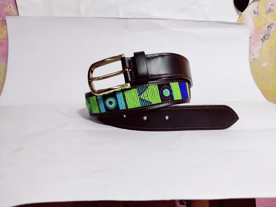 Customizable Genuine Cow Hide Leather Polo Belt with Beads Design Resin Buckle Material for Party Wear