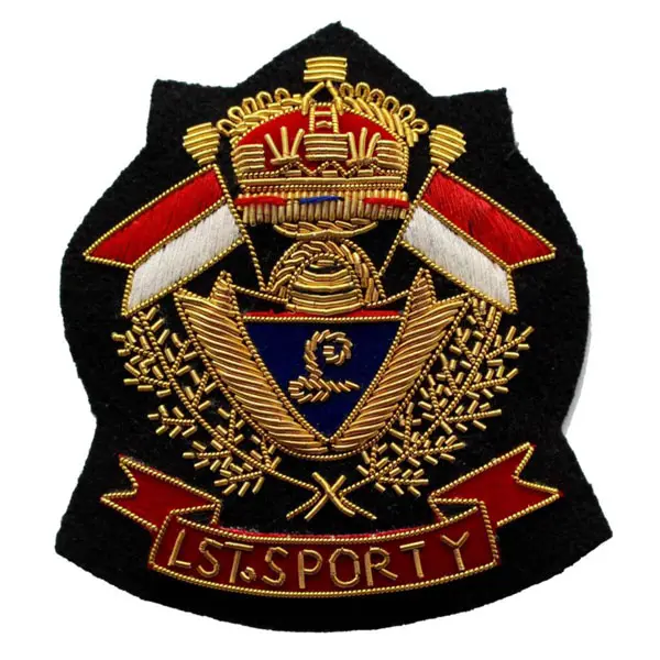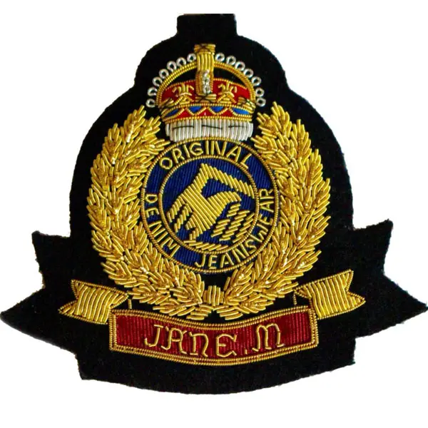 Customizable Gold Bullion Wire G Alphabet Crest Blazer Badge Hand Embroidered Jacket Patch with Felt Safety Pin Beads for Shirts