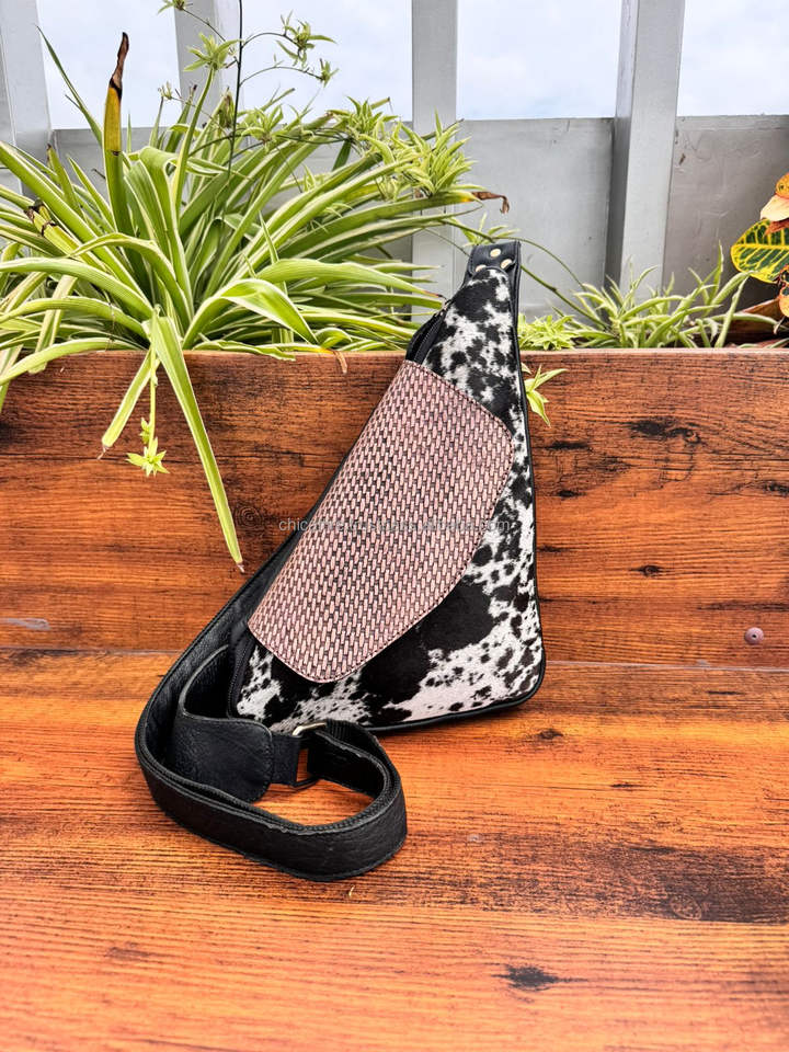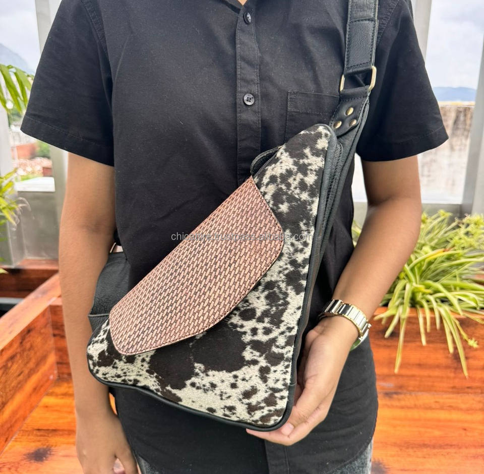 Customizable Hair on Hand Tooled Crossbody Sling Bag for Unisex Western Genuine Leather Vintage Travel Single Shoulder Chest Bag