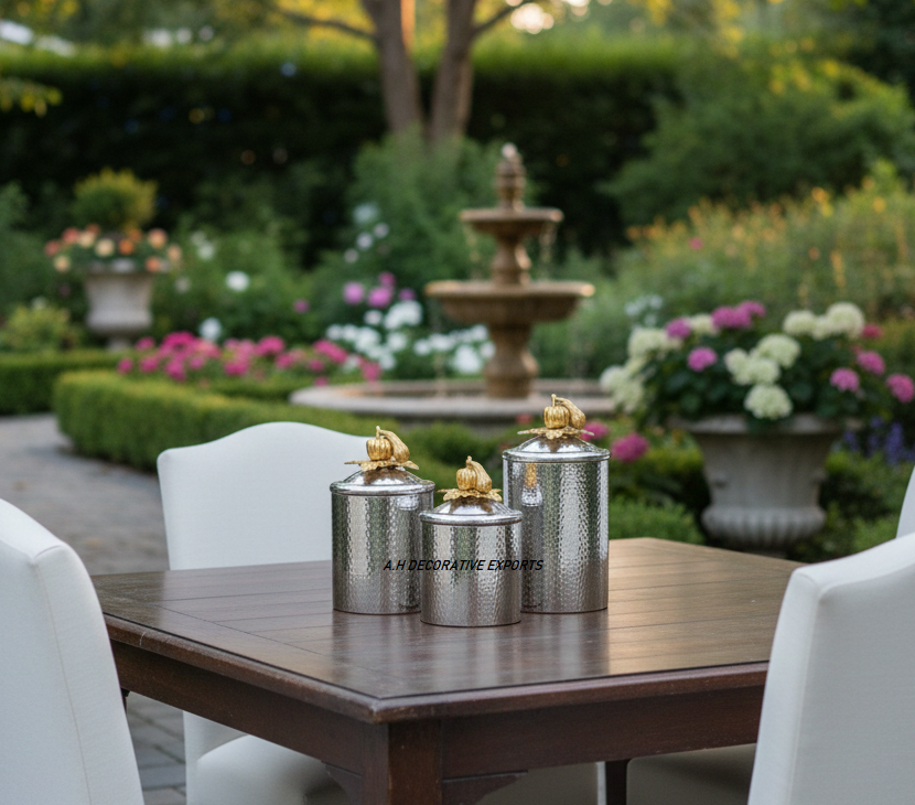 Customizable Hammered Stainless Steel Canister with Buckle Lid Silver Gold Top Eco-Friendly Handcrafted for Kitchen Food Storage