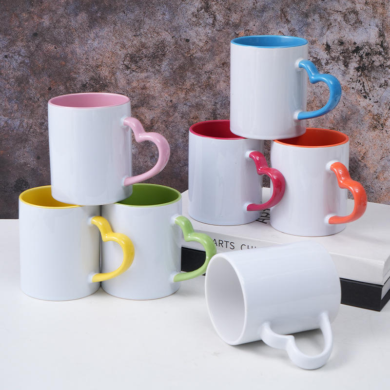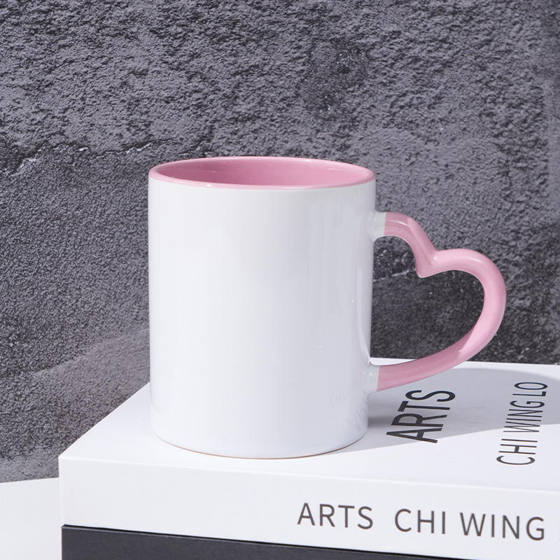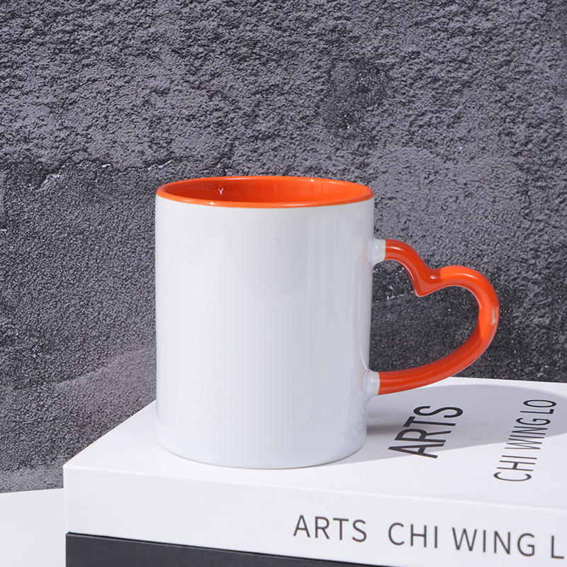 Customizable Heart Handle Mug Creative Color Rim Heart Coffee Cup Sublimation Coated Blank Ceramic Mug