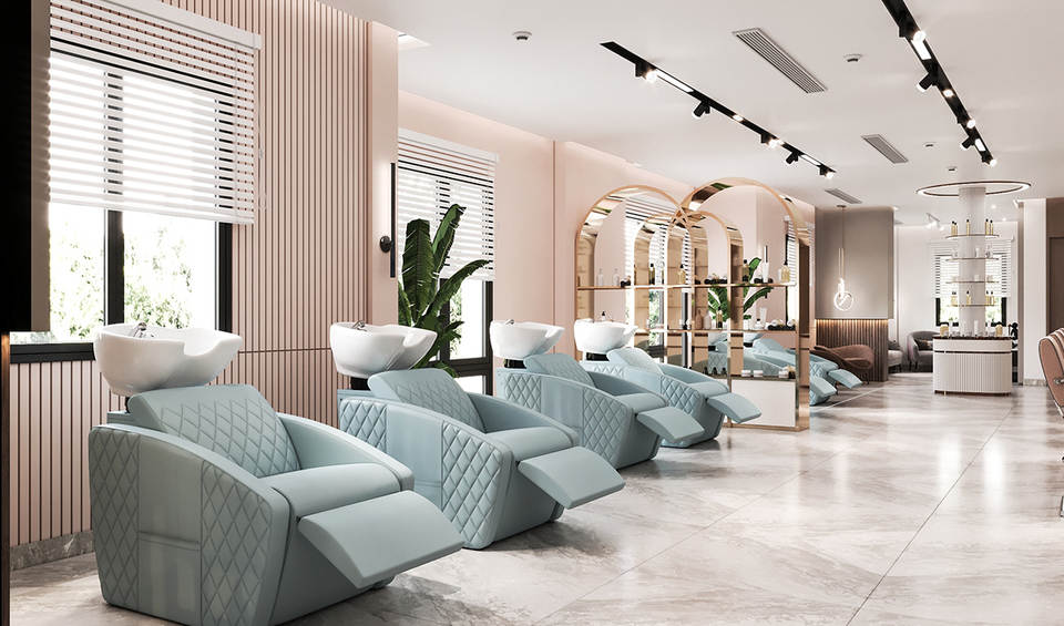 Customizable Heavy Duty Eco-Friendly Salon Display Warm Cozy Atmosphere Marble Top Counter LED Lighting Special Style for Beauty