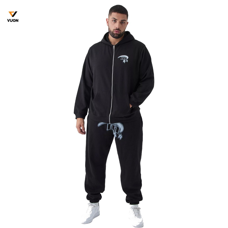 Customizable Heavyweight Terry Tracksuit for Men 2-Piece Set with Oversize Hoodie Baggy Flare Sweatpants Active Factory Clothing