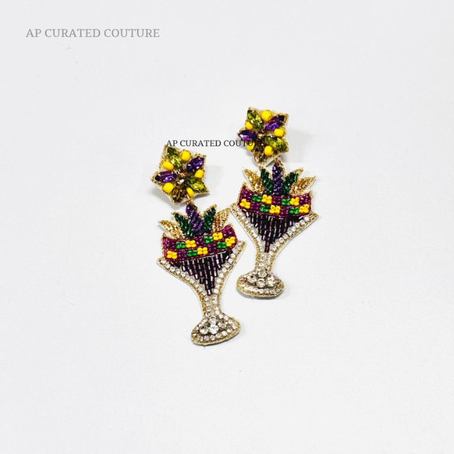 Customizable High Quality Glistening Mardi Gras Rhinestones Glass Beaded Drop Earrings for Girls Fashion Accessory