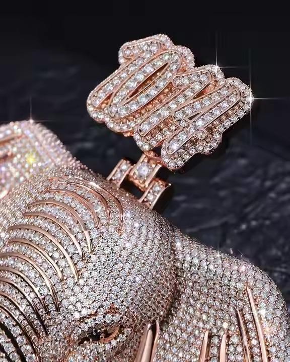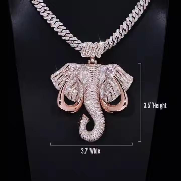 Customizable Hip Hop Style Fine Jewelry Pendants & Charms Iced Elephants Face Moissanite Diamond Pendant 925 Silver for Him