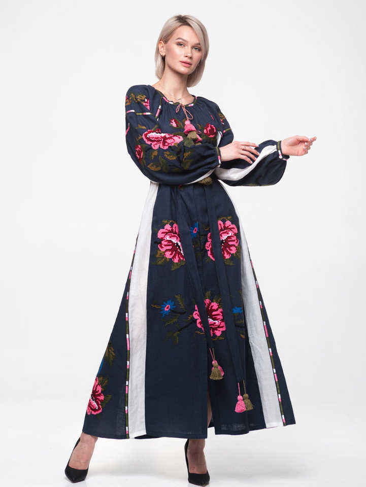 Customizable Linen Maxi Dress for Women Indian Cotton Floral Print Summer Party Casual Wear African Dashiki Style Embroidery