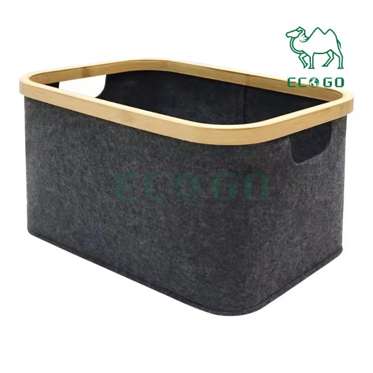 Customizable Logo Collapsible Laundry Basket Bamboo Frame Storage Basket for Home Shelves Closet