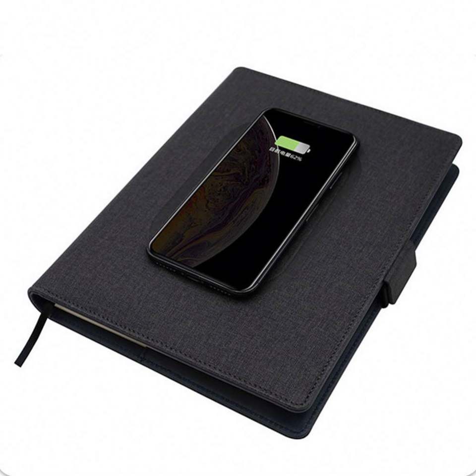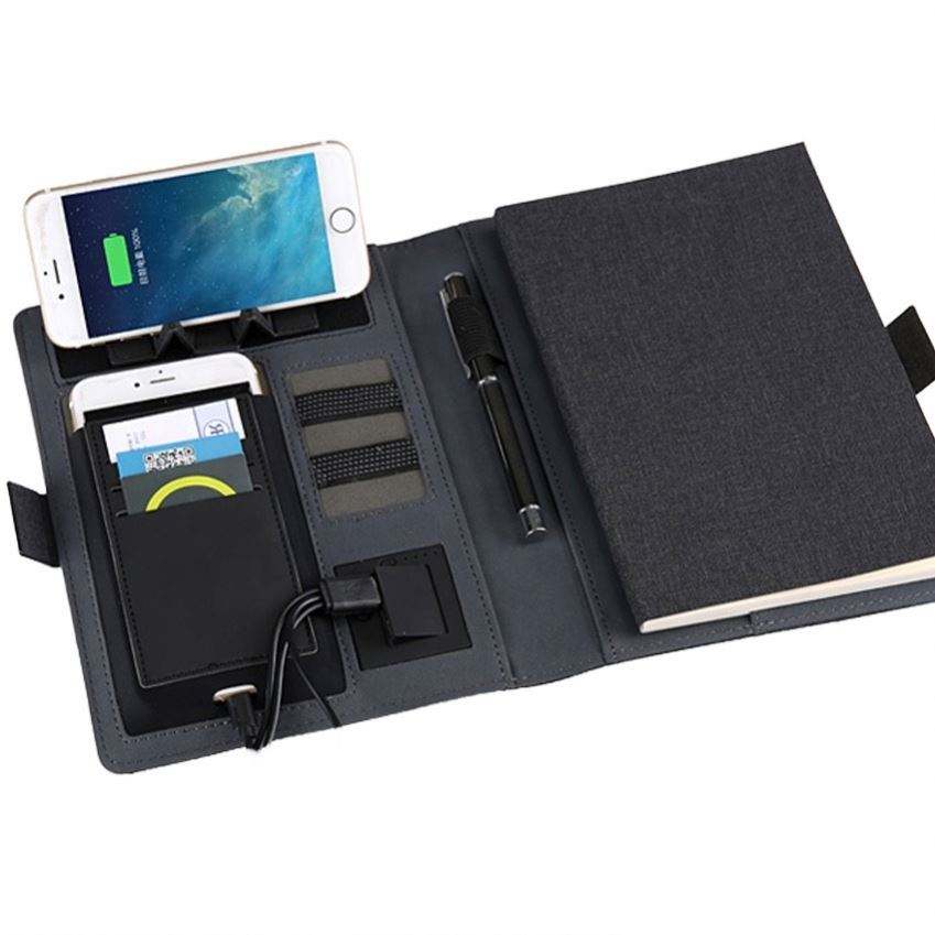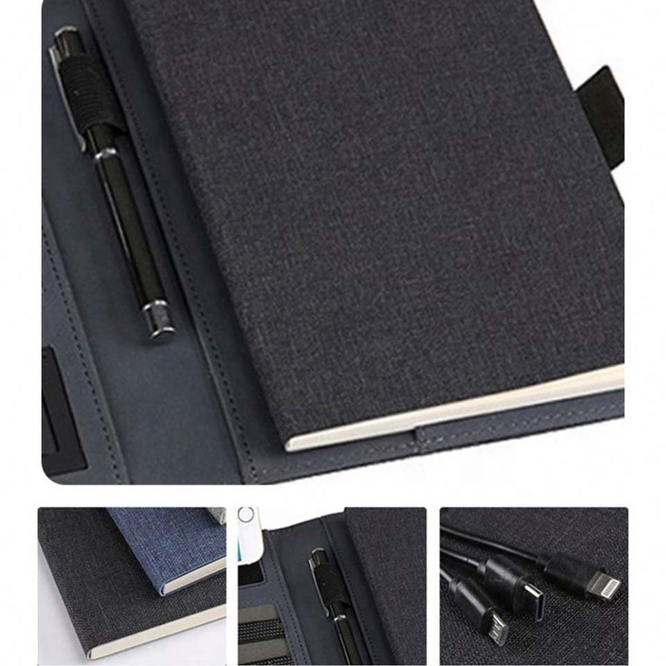 Customizable Logo Creative Wireless Charging Notebook Power Bank PU Cloth and Leather Cover Portable Manager Folder Diary Use