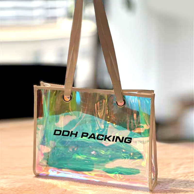Customizable Logo Holographic PVC Handle Fashion Shoulder Hologram Plastic Laser Beach Iridescent Tote Shopping Bag