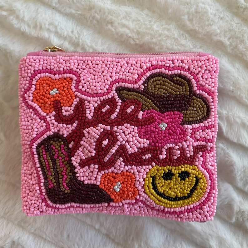 Customizable Logo Love Style Beaded Coin Bag Fashion Woman Purses with Embroidered Theme Zipper Closure Pouch for Cards
