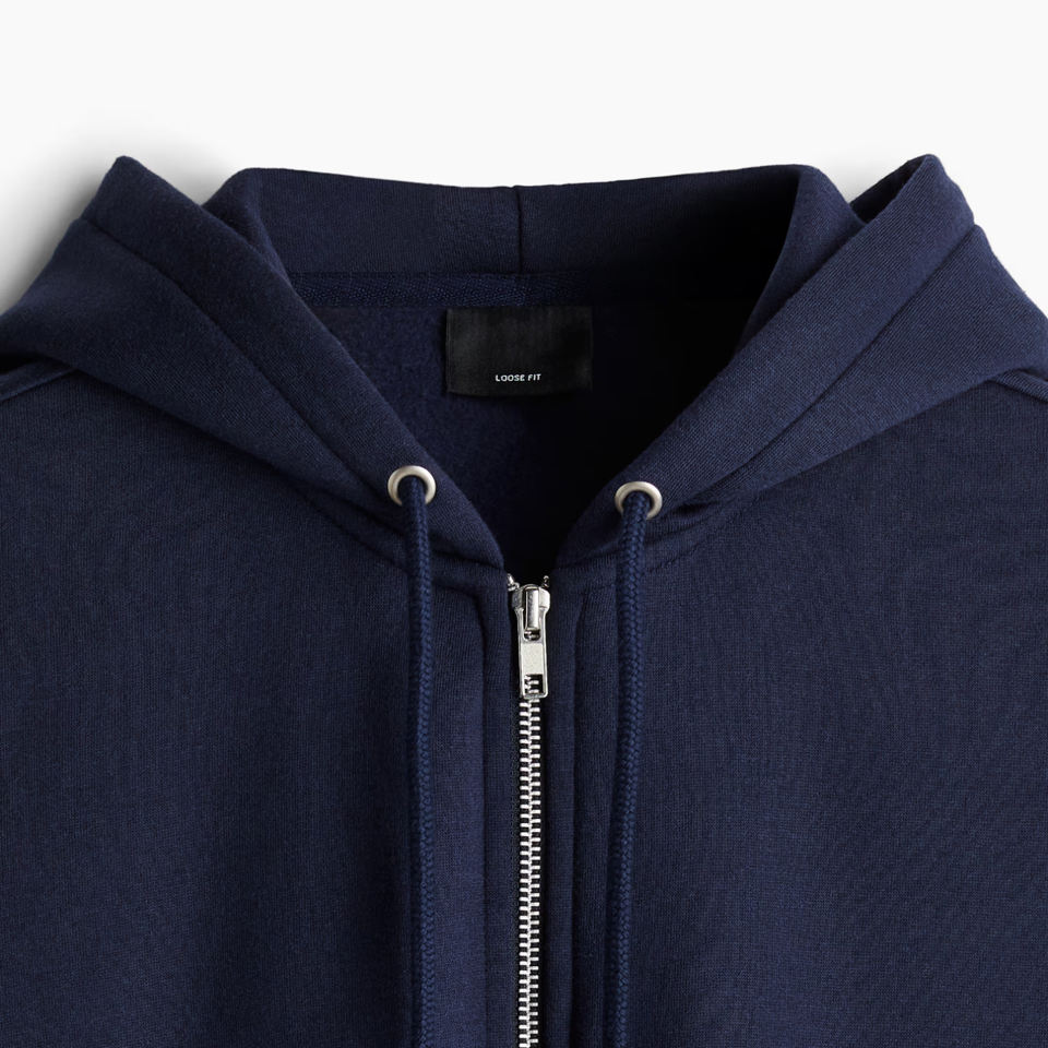 Customizable 100% Cotton Stonewashed Embroidered Loose Fit Dark Blue Hooded Jacket with Zipper Jersey Hood Ribbed Hem for Winter