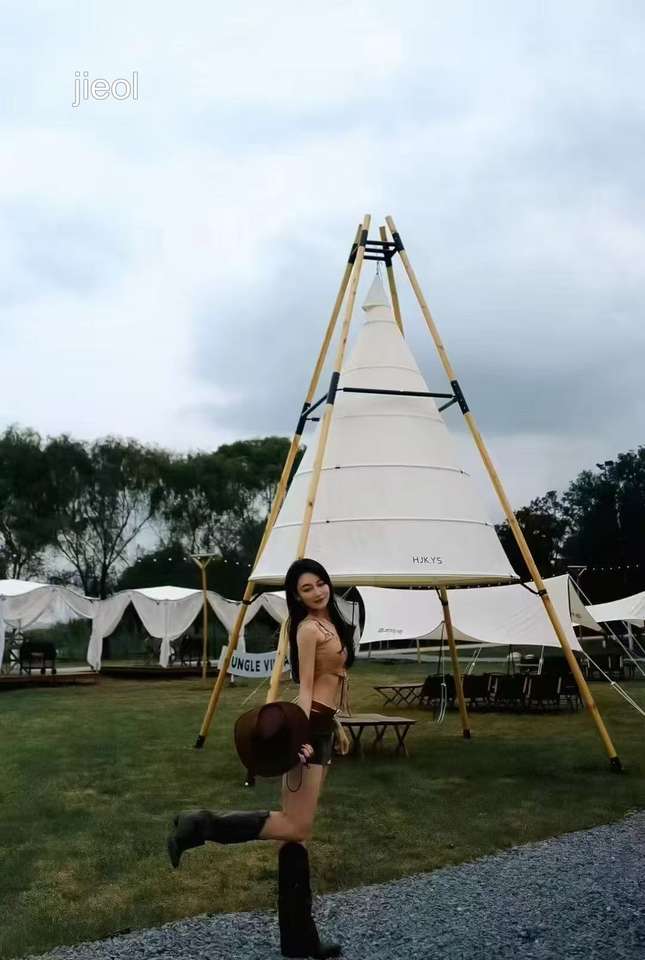 Customizable Luxury Lantern-shaped Wood Canvas Lodge Glamping Hut for Outdoor Camping Hotels Resorts Home Use Made Oxford Fabric