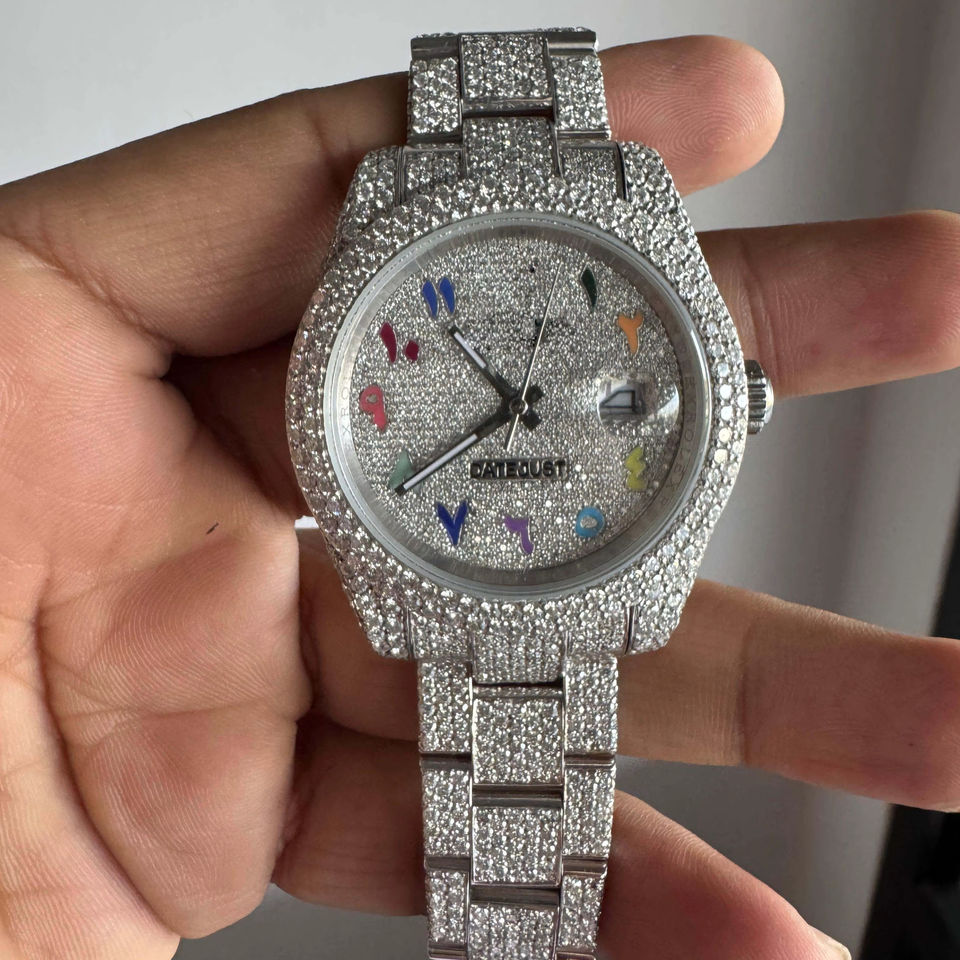 Luxury 41mm Arabic Numerals Watch Rainbow Dial VVS Moissanite Diamond Men Iced Out Automatic Mechanical Wristwatch