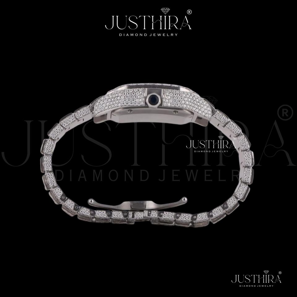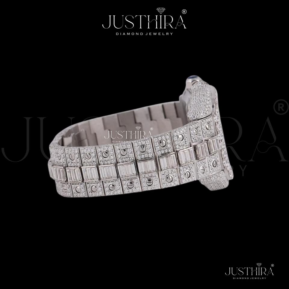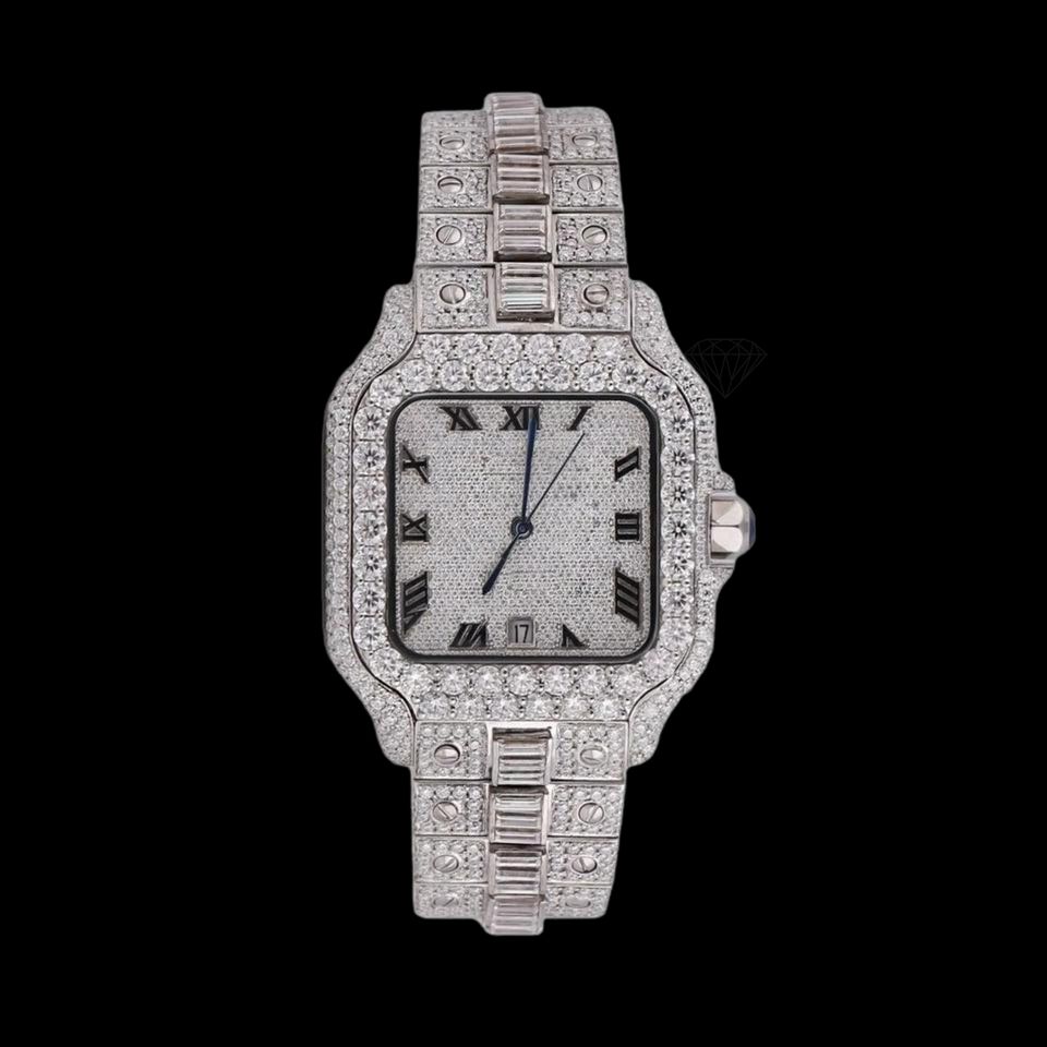 Customizable Luxury Men's Hip Hop Watch Real Moissanite Diamond Studded Silver Plated Quartz Movement ETA Limited Edition 10 Bar