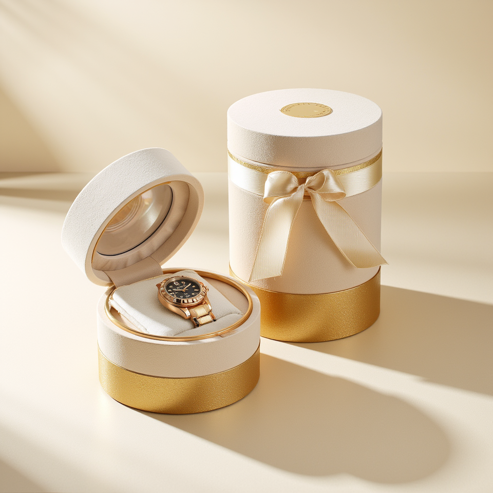 Customizable Luxury Premium Watch Packaging Planted Velvet Eco-Friendly Recyclable Paper Cylinder Box Vanishing Kraft Paper