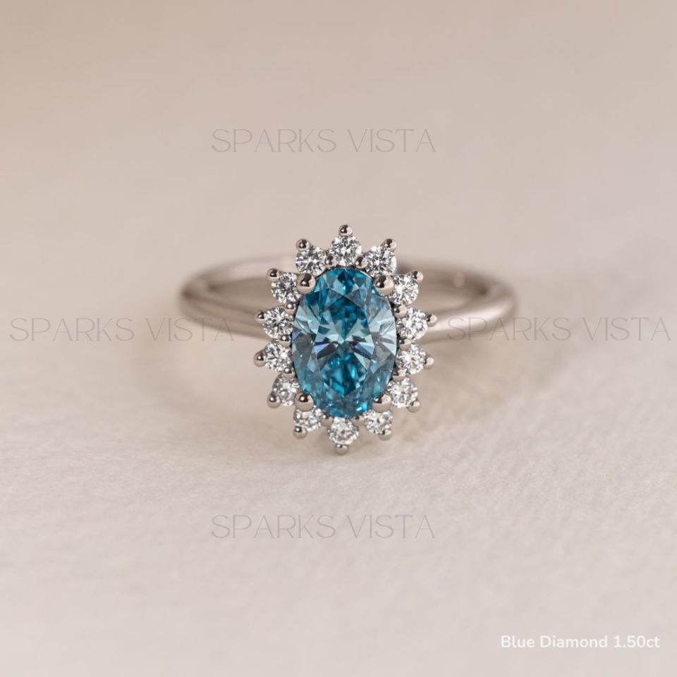 Customizable Luxury Silver Plated 925 Sterling Silver Oval Diamond Halo Setting Engagement Ring IGI Certified Women