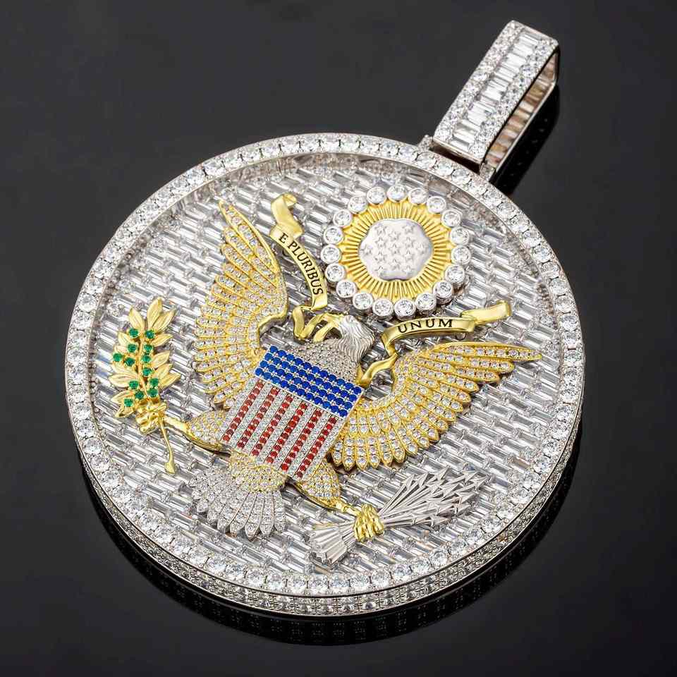 Customizable Luxury Vintage Gold Plated Claw Setting Inlay Fully Iced Moissanite Diamond Pendant with Unique Design