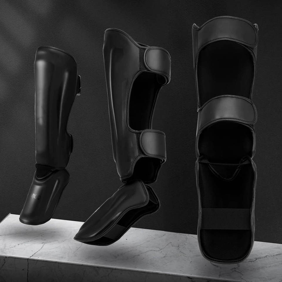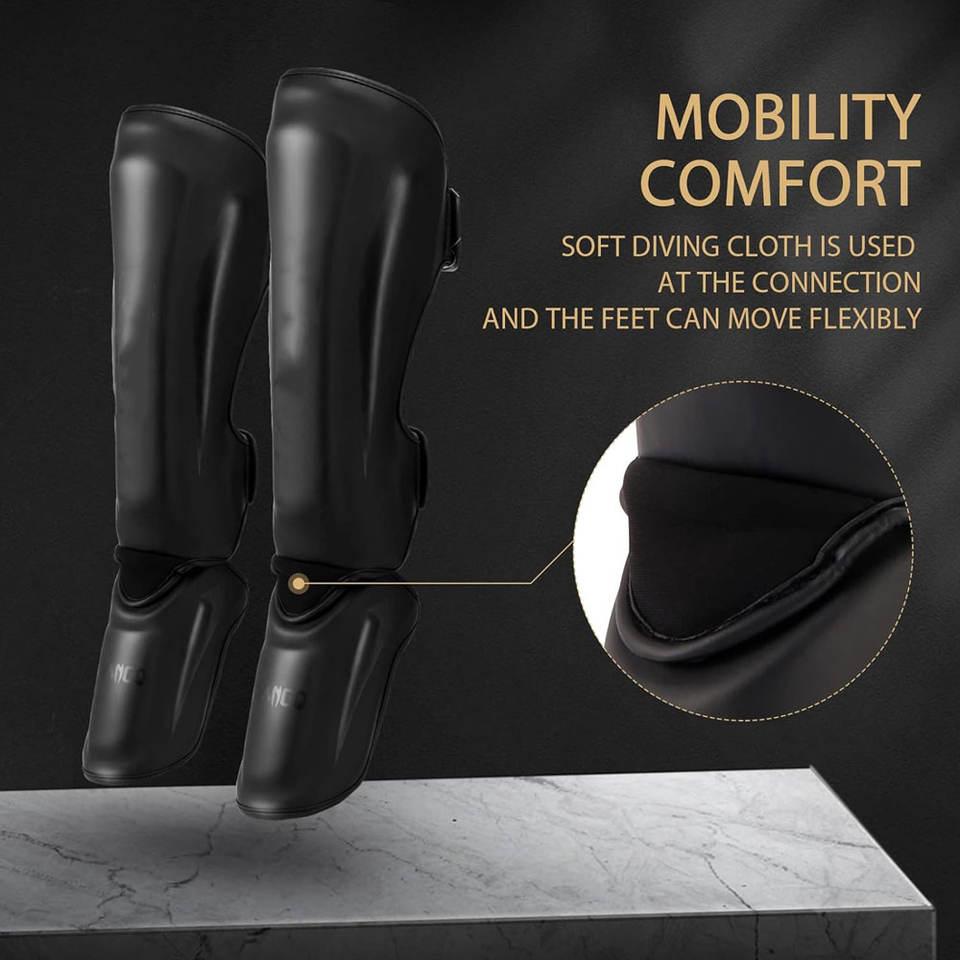Customizable MMA Training Gear Black Synthetic Leather EVA Foam Nylon PU Material Shin Guard Comprehensive Protection Hook Loop