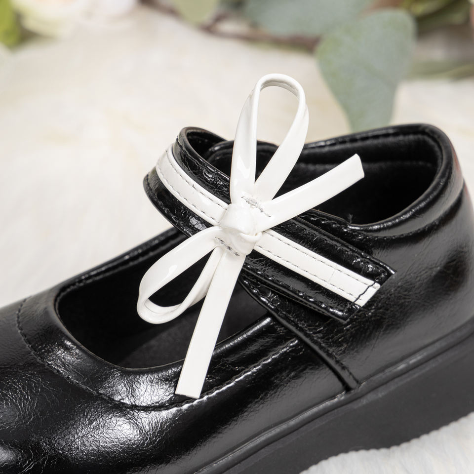 Customizable Mary Jane School Shoes Girls Fashionable Black Dress Shoes Bowknot Thick Soles Summer Parties Insole Material PU