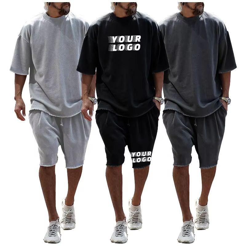 Customizable Men's Casual Sports Two-Piece Set High Quality 100% Cotton Breathable T-Shirt and Shorts Street Style for Summer