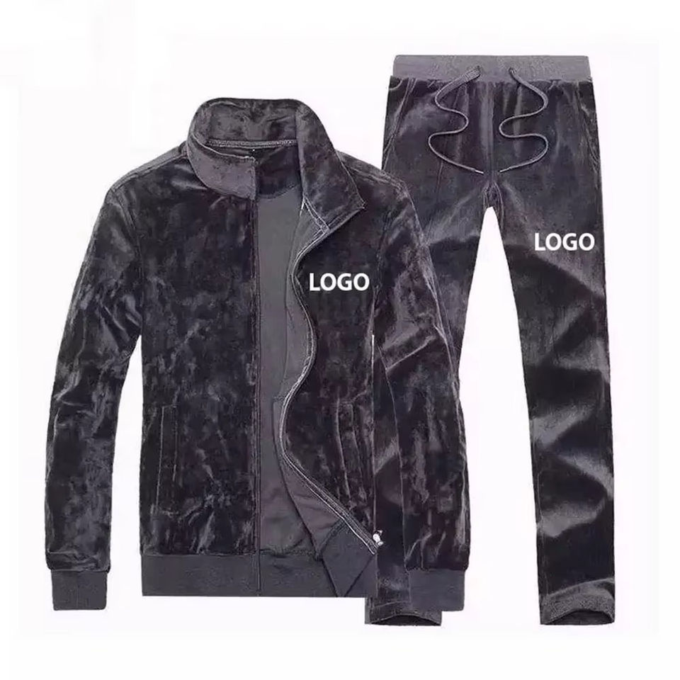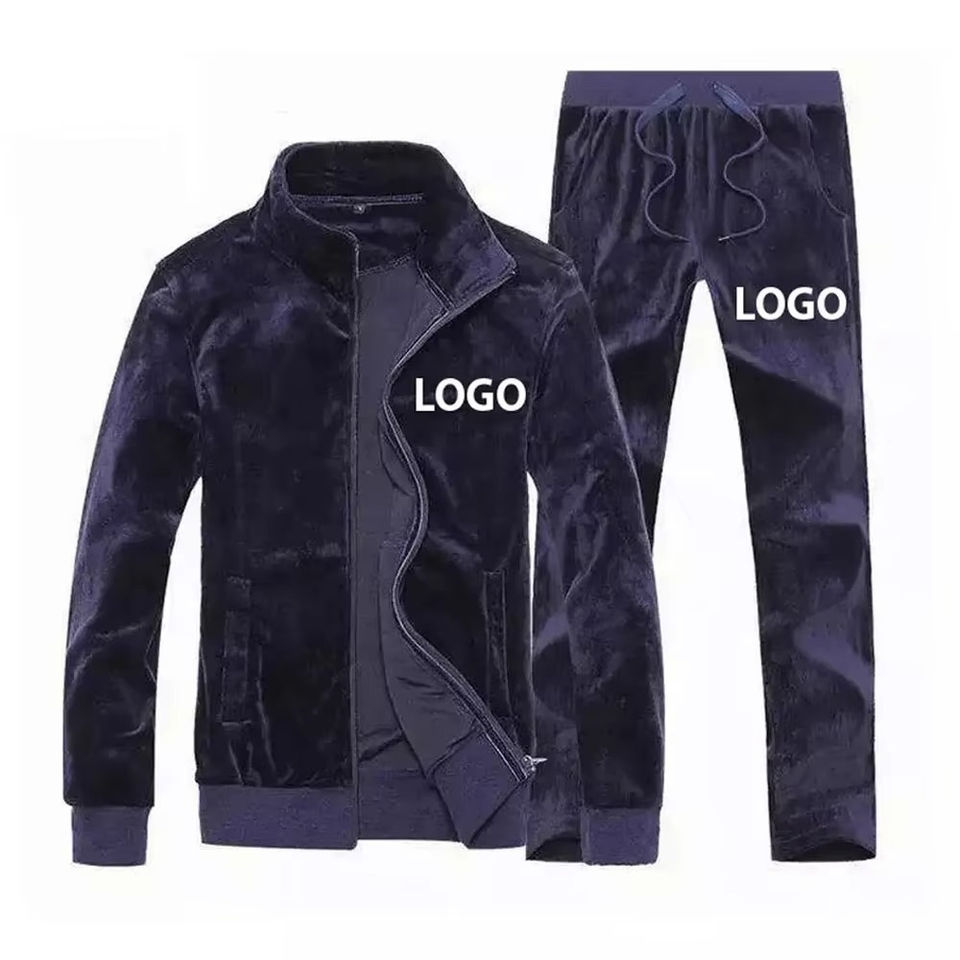 Customizable Men's Skinny Velour Tracksuit Wholesale Velvet Two-Piece Tracksuit Set By OVERSEAS SPORTS