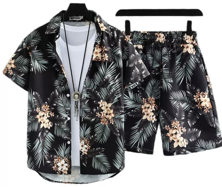 Customizable Men's Summer Top and Shorts Set Hawaii Casual Loose Fit Shirt with Trendy Print Beachwear Lightweight Outfit