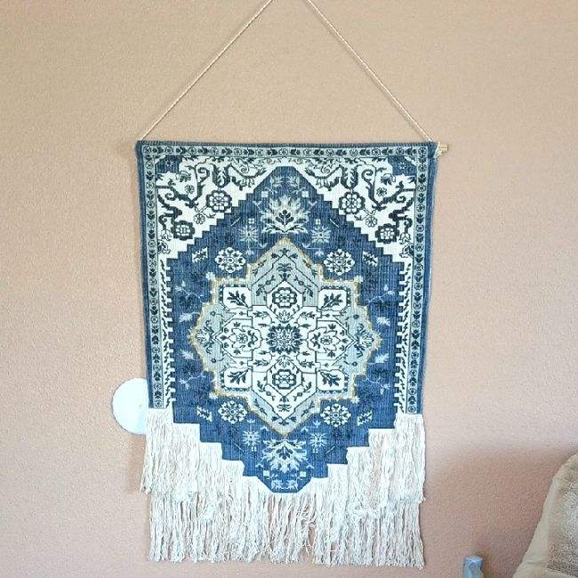 Customizable Modern Boho Blue Woven Fabric Square Abstract Geometric Multi-piece Wall Decal Hanging for Diwali Wedding Birthday