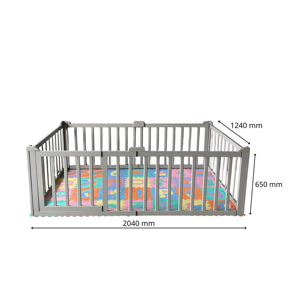 Customizable Modern Gray Pine Baby Crib and Playpen Enhances Bedroom or Living Room Furniture for Newborns