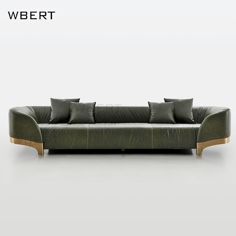 Customizable Modern Italian Sectional Sofa Square Dark Green Leather Wood Sponge Filling for Hotels Villas