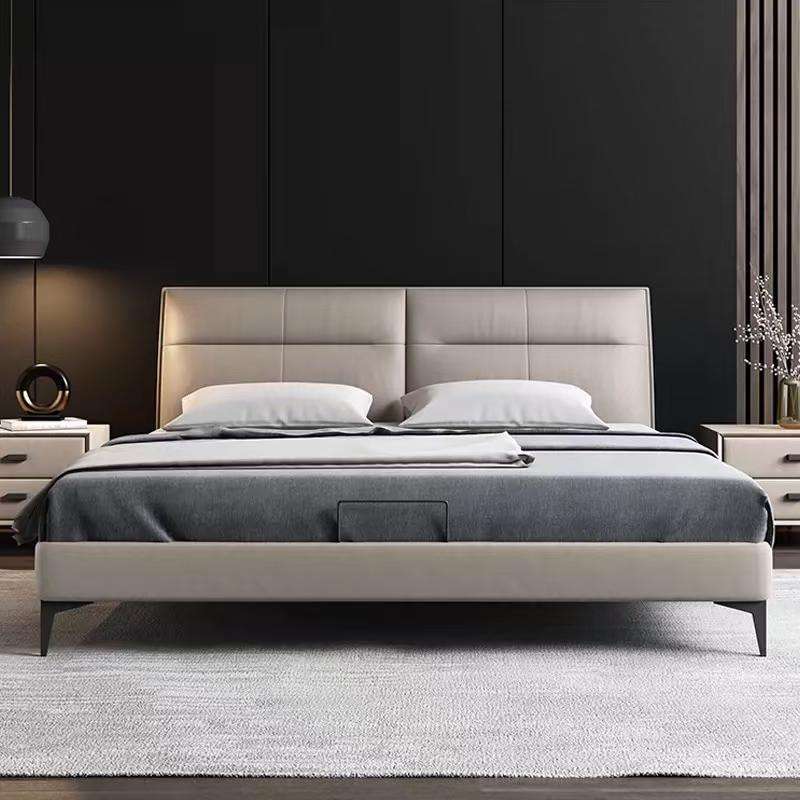 Customizable Modern Oak Wood Single King Size Bed Comfortable Leather Multi-Functional Minimalist for Home Bedroom Application
