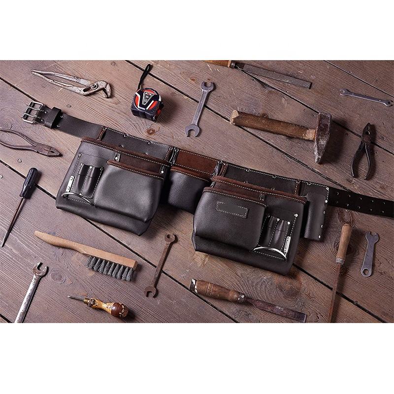 Customizable Multi-Function Leather Tool Belt for Construction & Electricians Rolling up Waist Belt Plastic Bag OEM Supported