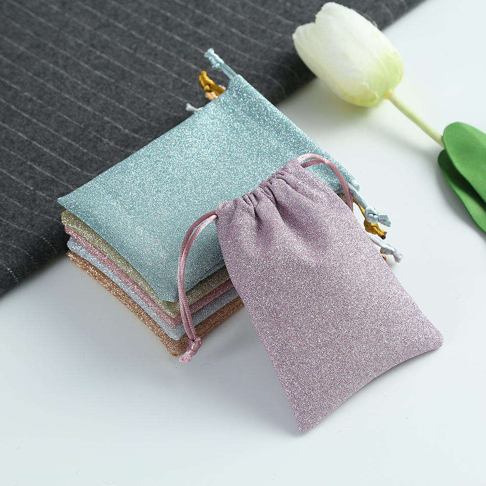 Customizable PU Small Drawstring Pouch Bags Glittering Effect Anti-Theft Zipper Portable for Summer Spring Jewelry Storage