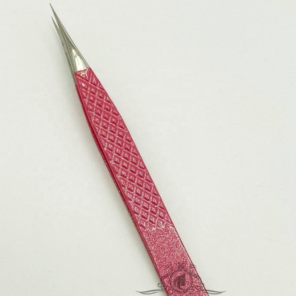 Customizable Pink Silver Glitter Straight Shape Tweezers Stainless Steel Eyelash & Eyebrow Isolation Tweezers