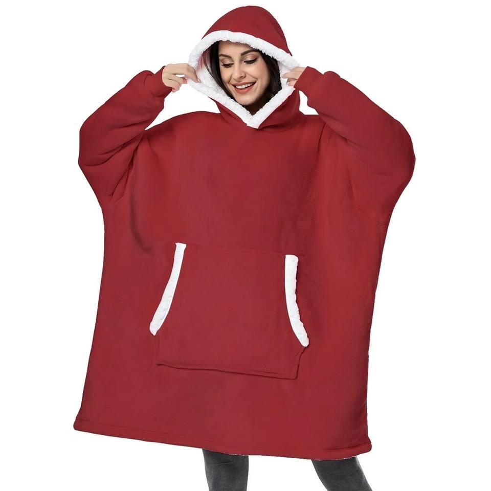 Customizable Poncho Hoodie Sweatshirt for Women Double Sided Flannel Sherpa Fleece Soft Wearable Blanket for Winter Adults