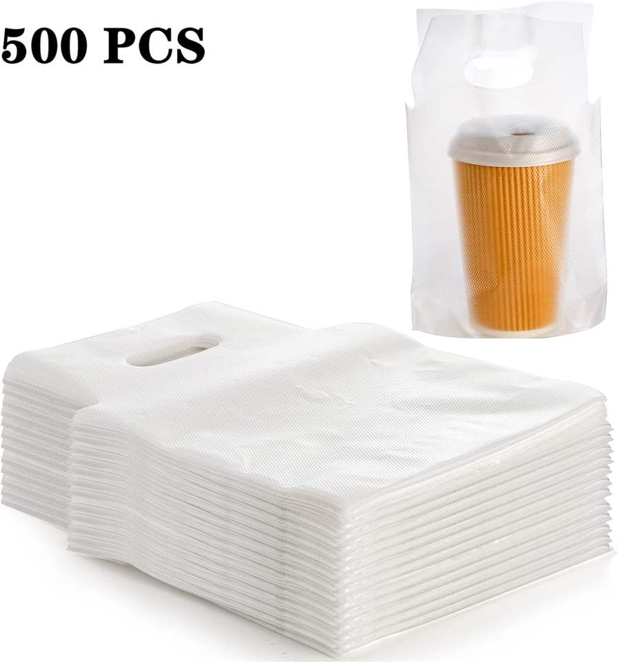 Customizable Portable Plastic Bags for Drinks Transparent Perforated Single & Double Cups